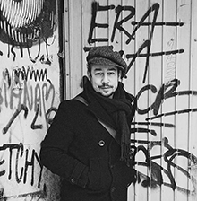 Né en 1984, ce sale gosse a grandi à Clichy-sous-Bois dans le 93 où il a eu la chance de découvrir par hasard Charlie Parker, Jim Morrison, Rimbaud, Bob Dylan, Bogart et Henry Miller. A la fin de l’adolescence, il se fait la belle : marchant, rêvant, réalisant des films et bossant parfois dans des fermes (Liban, Irlande, Népal…). Il a aujourd’hui posé ses valises en Roumanie où il est devenu son propre patron. Auteur d’un récit de voyage sur la Roumanie en « Hors-piste » qui est devenu un succès de librairie dans sa version roumaine, il a enchaîné avec un premier roman chez Maurice Nadeau, Noir de soleil (finaliste du Prix France-Liban et du Prix Ulysse du premier roman 2019). Il a également commis plusieurs recueils dont Imprécations nocturnes chez Conspiration éditions (Prix Amélie Murat et Prix Renée Vivien 2023, finaliste du Prix Robert Ganzo la même année). Sa poésie circule un peu partout et dans plusieurs langues : revues (Arpa, Le Cafard Hérétique, Place de la Sorbonne, Le Journal des poètes, Verso…), livre d’art (Poème Païen à l’œil de la méduse), anthologies (dont Ces Instants de grâce pour l’éternité au Castor Astral, 2024). Il revient parfois en France pour lire sur scène dans des festivals, un bon prétexte pour revenir à la maison et trinquer avec des joyeux lurons triés sur le volet. Ce poète révolté par l’écriture et seulement par elle recherche encore la fraternité là où il peut la trouver.