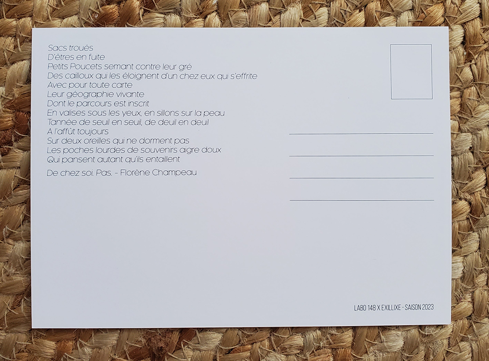 Florène Champeau vit à Lille. Issue du secteur culturel elle a ressenti le besoin de "passer de l'autre côté", du soutien aux mots des autres à l'expression des siens. Sensible à la question de la transmission et des façons de se rencontrer elle intervient en master Culture et Communication à l'Université de Lille sur la notion de proximité dans les projets culturels et s'implique dans le conseil d'administration des Yeux d'Argos, collectif d'arts visuels et numériques, et du collectif La Friche composé de journalistes, de documentaristes et d'artistes. Elle publie sa poésie sur Instagram (@lignes_fugues), dans des revues poétiques et à l'occasion d'initiatives artistiques collectives (hélas!, Cahiers rouges, nos accointances, Egoèmes, Labo148, La Velociraptora Histriónica). Ses textes, poésie des saisons et des chemins, viennent dire avec douceur, comme dans le creux de l'oreille, des interrogations, des révoltes et des consolations.